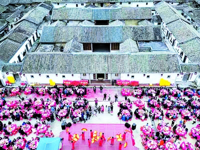 四方埔村現(xiàn)存客家民居90多座,其代表性建筑——蕭氏圍屋建于清乾隆四十二年,現(xiàn)保存基本完好。坪地街道通過在蕭氏圍屋開展“悅動(dòng)坪地·與你暢享”廚藝比賽,展示客家飲食文化,促進(jìn)鄰里和諧;在每年的“露瀼堂慶典日”舉辦大盆菜宴,邀請(qǐng)海內(nèi)外蕭姓族人回鄉(xiāng)祭祖、舞麒麟、吃大盆菜,傳承客家民俗風(fēng)情。