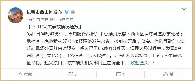 西山區(qū)福海街道辦事處楊家地社區(qū)王家地新村37號1樓樓道處發(fā)生火災(zāi),火災(zāi)造成6人遇難。