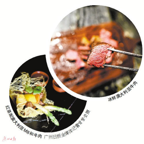 澳大利亞M8級的牛肉接近最高級別的牛肉,肉的口感極佳,它是西餐廚房中的優(yōu)質(zhì)食材,也為中餐廚師青睞,王府半島酒店凰庭中餐廳行政總廚梁師傅最喜歡烹飪這款牛肉。他選用牛的上腰部的脊肉,切成粒狀后香煎,配搭紅燈籠椒與黃燈籠椒。酒店重視中國茶文化,因此梁師傅用茶搭配這道牛肉菜肴。放一壺紫砂壺大紅袍在旁,一口大紅袍,一口牛肉,效仿西方紅酒配紅肉的飲食組合。最近,梁師傅用這款牛肉創(chuàng)造了一道蘆筍炒澳大利亞M8級和牛,牛肉配搭鮮蘆筍大火快炒,保證和牛肉的彈嫩口感,蘆筍的清新還中和了牛肉的厚重,營養(yǎng)豐富的同時還帶來無窮的味蕾體驗。