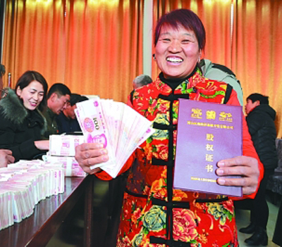 近日,山東淄博市博山區(qū)池上鎮(zhèn)中郝峪村進行了年底分紅,一年下來共分紅550多萬元。61歲的村民王葉紅拿著剛分到的一沓現金,高興得合不攏嘴。圖片來源:視覺中國/光明圖片