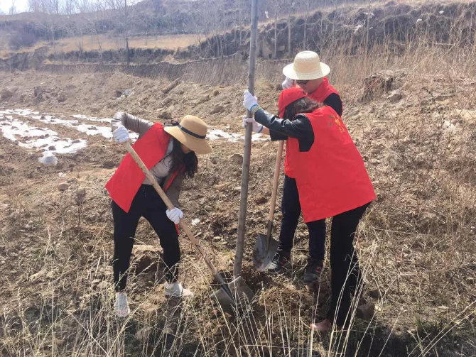 青年志愿者在植樹(shù)互助縣蔡家堡鄉(xiāng)黨政辦