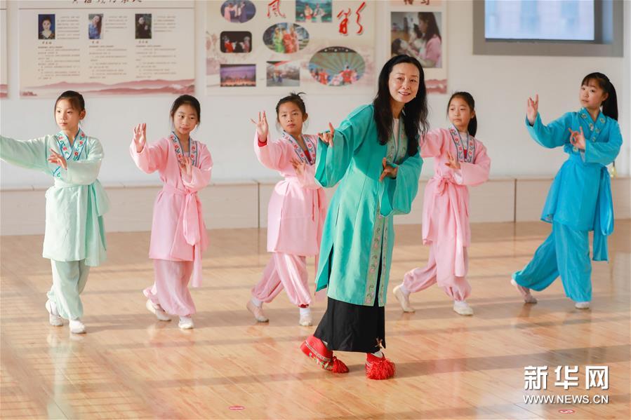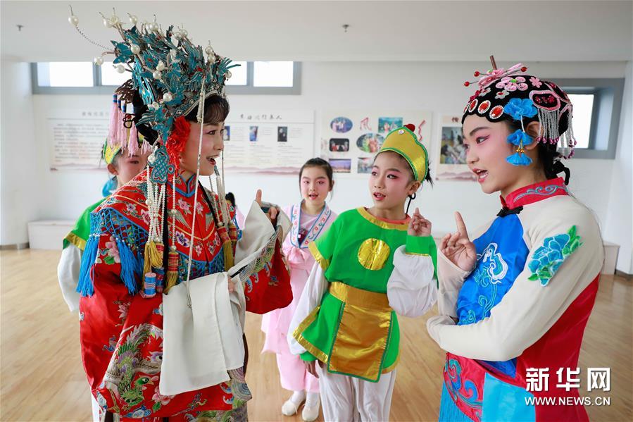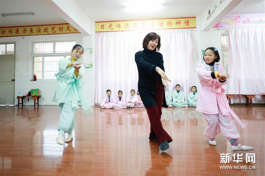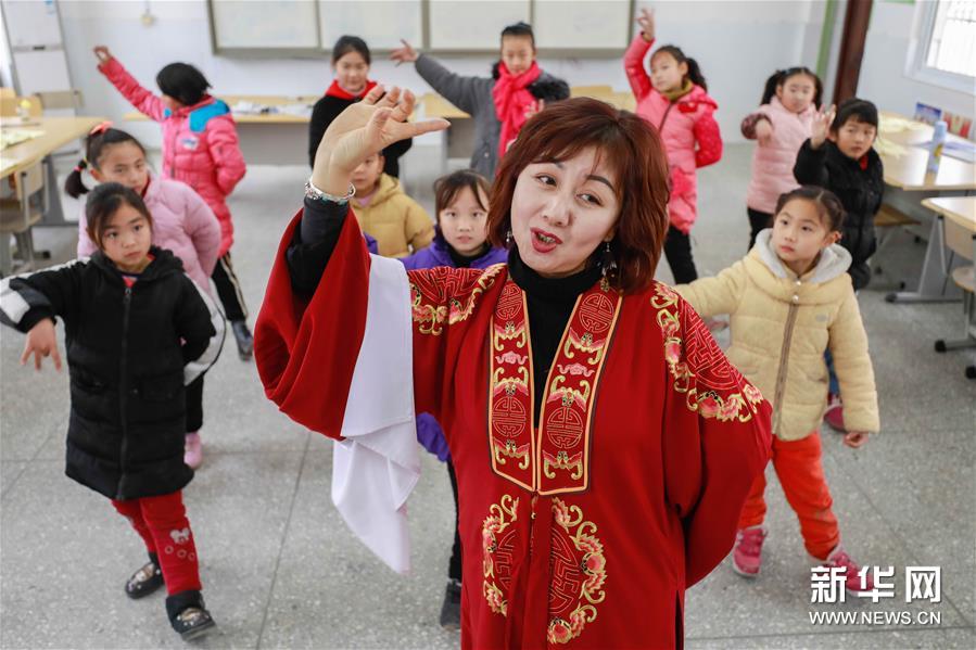 12月16日,在江蘇省淮安市盱眙縣五墩小學,盱眙縣黃梅戲劇團演員畢春梅(左)在輔導學生學習黃梅戲。 盱眙縣黃梅戲劇團成立于1958年,有送戲下鄉(xiāng)、傳承黃梅戲的傳統(tǒng)。近年來,劇團演員經(jīng)常來到當?shù)貙W校、鄉(xiāng)村,免費為學生、黃梅戲愛好者授藝,為人們講解黃梅戲的唱腔、動作、角色扮演要領(lǐng)等,讓更多的人感受非遺戲曲的魅力。 新華社發(fā)