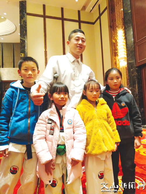 第一個(gè)寒假招了80多名學(xué)員,開(kāi)局不錯(cuò)。后來(lái),有教練請(qǐng)長(zhǎng)假,館里一個(gè)教練都沒(méi)有。高德海只能硬著頭皮上,他講理論,讓一個(gè)老學(xué)員示范動(dòng)作,得到家長(zhǎng)認(rèn)可,自己信心大增,后來(lái)開(kāi)始慢慢摸索坐著輪椅教跆拳道的方法?!肮Ψ虿回?fù)有心人,慢慢的,學(xué)員家長(zhǎng)都認(rèn)可了我的授課方式,還主動(dòng)幫我宣傳,一年多后道館就恢復(fù)到我沒(méi)出車(chē)禍時(shí)的人氣?!备叩潞8屑さ卣f(shuō)。
