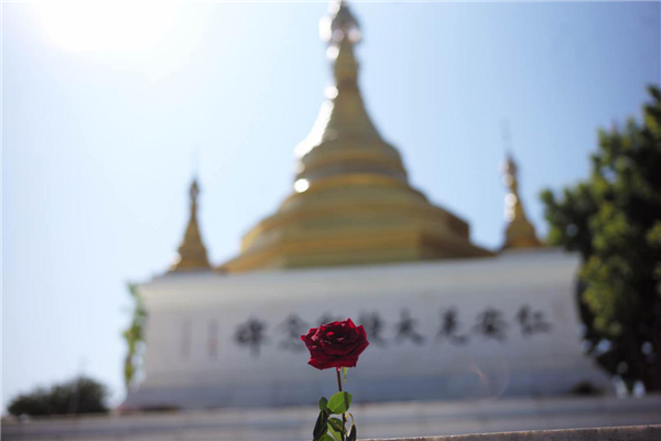 如今,血染的戰(zhàn)場,已難覓當年的槍炮痕跡。烈日下,只有海峽兩岸出資新修建的仁安羌大捷紀念碑,呈七級佛塔造型,金光閃閃,高高地聳立在“501高地”上。