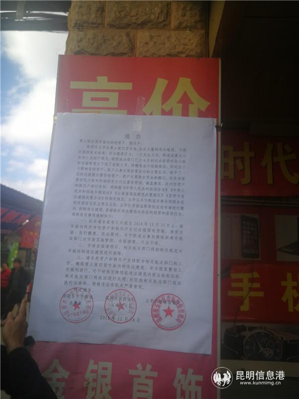 昆明信息港訊 記者李紅鸞 12月18日下午,五華區(qū)豐寧街道辦事處召開(kāi)黃土坡舊貨市場(chǎng)安全隱患整治工作推進(jìn)通報(bào)會(huì),豐寧街道已在12月6日、7日依法對(duì)違法建筑黃土坡舊貨市場(chǎng)進(jìn)行斷電、斷水,但是截止目前市場(chǎng)內(nèi)經(jīng)營(yíng)戶依然正常經(jīng)營(yíng),并無(wú)大量搬遷的跡象。五華區(qū)相關(guān)部門(mén)呼吁商戶在2018年12月31日前搬離,下一步將依法對(duì)市場(chǎng)進(jìn)行整治,拆除違法建筑,并清除在違法建筑內(nèi)存在的經(jīng)營(yíng)和居住行為。