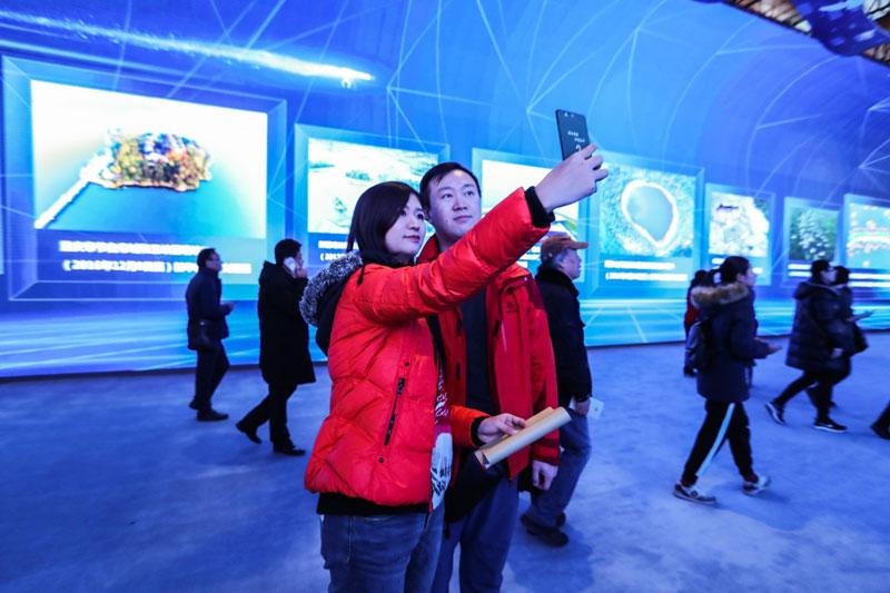 12月18日,參觀者在“大美中國(guó)”影像長(zhǎng)廊留影。新華社記者張玉薇/攝