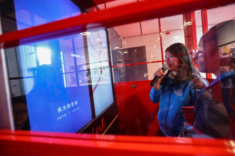 12月18日,參觀者在“偉大的變革——慶祝改革開(kāi)放40周年大型展覽”上進(jìn)行語(yǔ)音留言。新華社記者張玉薇/攝