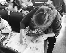 “愛心媽媽”正在輔導(dǎo)“兒童之家”孩子畫畫。