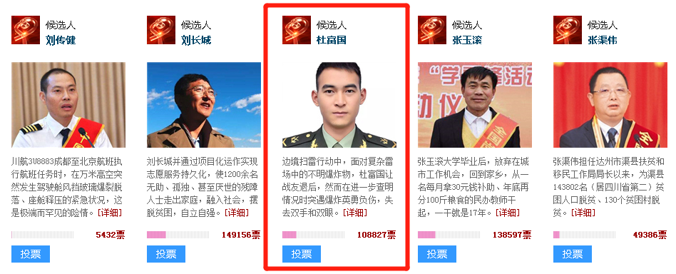 如果你也被杜富國的事跡感動(dòng),請(qǐng)登陸感動(dòng)中國2018年度人物評(píng)選網(wǎng)站為他投上寶貴一票!