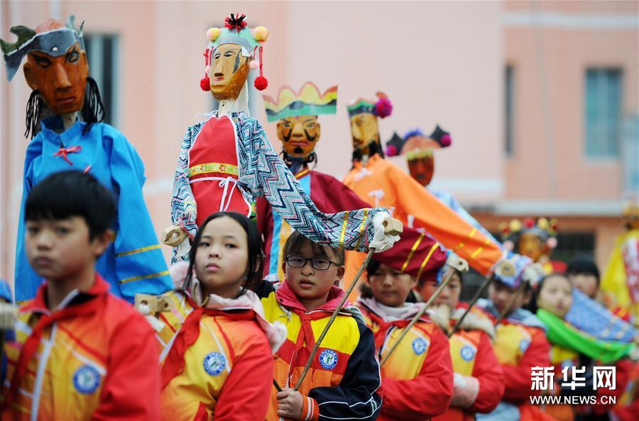12月19日,貴州省石阡縣花橋鎮(zhèn)小學(xué)的學(xué)生在練習(xí)石阡木偶戲。 近年來,為傳承和保護(hù)石阡木偶戲,貴州省石阡縣將木偶戲引入校園,定期邀請(qǐng)傳承人到學(xué)校為師生指導(dǎo)授課。學(xué)校還通過興趣活動(dòng)課、課間集體展示等方式,讓石阡木偶戲這一古老民間藝術(shù)形式在校園中得以展示和傳承。 石阡木偶戲是流傳于貴州省石阡縣的一種傳統(tǒng)傀儡戲曲劇種,2006年被列入第一批國(guó)家級(jí)非物質(zhì)文化遺產(chǎn)名錄。新華社發(fā)(楊文斌/攝)