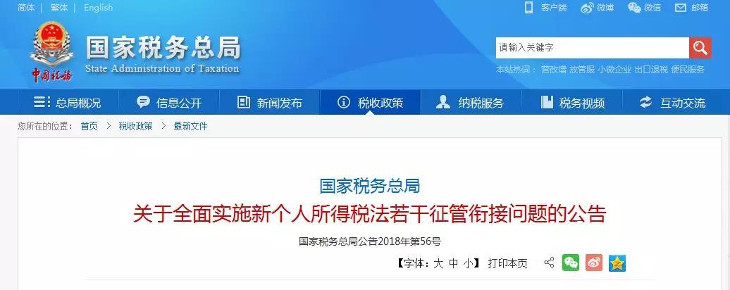 昆明信息港綜合 2019年1月1日起,我國個稅綜合制改革將正式落地,工資、薪金所得,勞務報酬所得,稿酬所得,特許權使用費所得等4項勞動性所得綜合后,按年綜合納稅。12月20日,國家稅務總局在官網(wǎng)發(fā)布《國家稅務總局關于全面實施新個人所得稅法若干征管銜接問題的公告》,就扣繳義務人對居民個人、薪金所得,勞務報酬所得,稿酬所得,特許權使用費所得預扣預繳個人所得稅的計算方法進行了明確,并公布了《個人所得稅預扣率表》。
