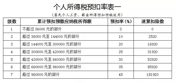 工薪所得預扣率如下圖: