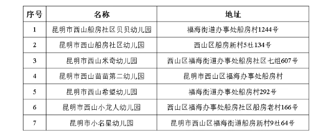 《告知書》還提醒廣大家長不要盲目聽從幼兒園有關人員及中介的安排,以免發(fā)生不必要的經濟損失和糾紛。同時,西山區(qū)教育局還公布了船房片區(qū)可供選擇的民辦幼兒園名單。
