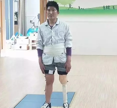 近日,在浙江康復(fù)醫(yī)療中心和假肢提供商的幫助下,歷經(jīng)兩次手術(shù)的外賣小哥王建生為左腿上安裝了假肢。