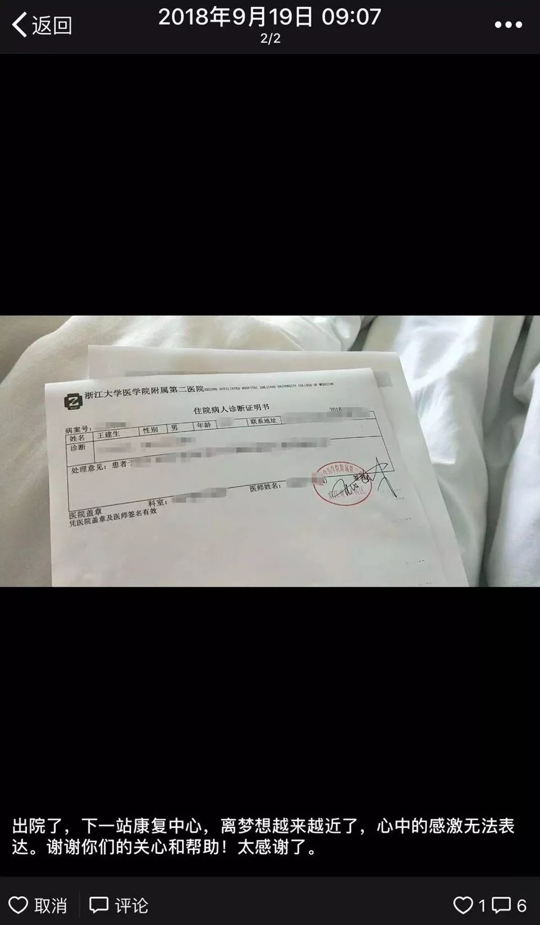 9月19日,王建生出院了,