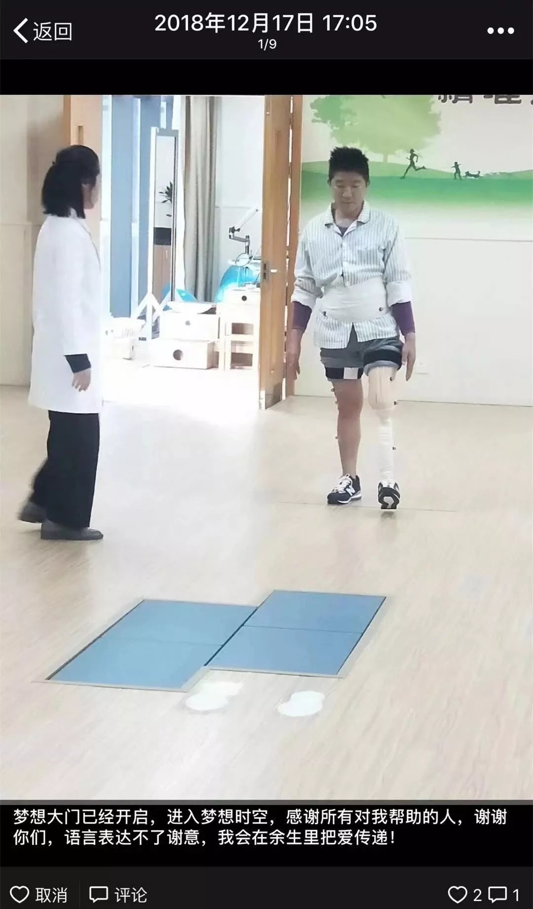 正在努力練習(xí)假肢走路,