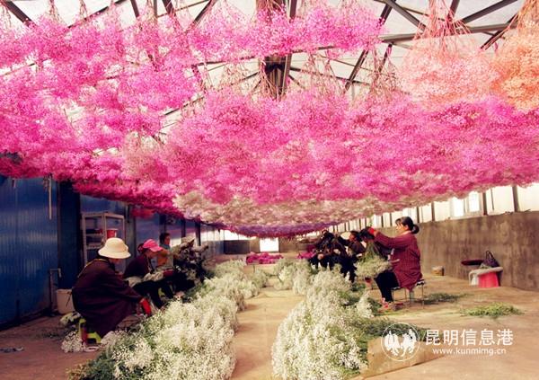 除了鮮切花種苗、鮮切花、盆花等產(chǎn)品外,云南花卉產(chǎn)業(yè)還有鮮切花后加工產(chǎn)品,此次入選“10大名花”的云南利魯環(huán)境建設(shè)有限責(zé)任公司“夢(mèng)之草”牌保真花(滿天星)就屬于鮮切花后加工產(chǎn)品。