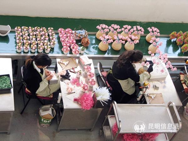 員工正在制作“夢(mèng)之草”保真花卉產(chǎn)品