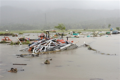 截至23日,印尼海嘯死亡人數(shù)已升至168人,圖為印度尼西亞萬丹省板底蘭,汽車和拖拉機被淹沒在水中。