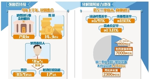 銀行業(yè)抵御風(fēng)險(xiǎn)能力正持續(xù)增強(qiáng)。據(jù)銀保監(jiān)會(huì)有關(guān)部門負(fù)責(zé)人介紹,目前,銀行業(yè)主要監(jiān)管指標(biāo)都在監(jiān)管合理區(qū)間之內(nèi)。截至三季度末,商業(yè)銀行流動(dòng)性覆蓋率達(dá)128%,撥備覆蓋率達(dá)180%,資本充足率達(dá)13.8%。數(shù)據(jù)表明,銀行業(yè)在大力化解風(fēng)險(xiǎn)的同時(shí),抵御和化解風(fēng)險(xiǎn)能力也在不斷增強(qiáng)。