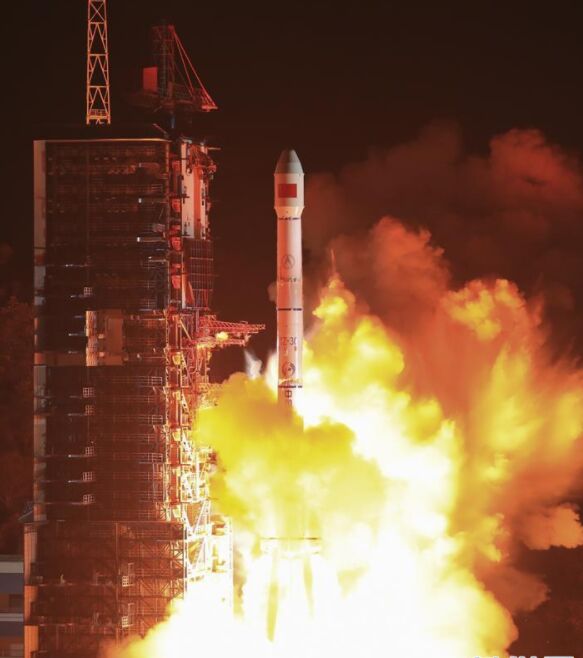 12月25日零時(shí)53分,我國(guó)在西昌衛(wèi)星發(fā)射中心用長(zhǎng)征三號(hào)丙運(yùn)載火箭,成功將通信技術(shù)試驗(yàn)衛(wèi)星三號(hào)發(fā)射升空,衛(wèi)星進(jìn)入預(yù)定軌道。新華社發(fā)王玉磊/攝