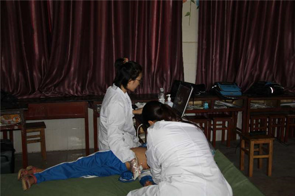 隨后,云南省紅會醫(yī)院醫(yī)生利用儀器對在校1200名學(xué)生一一做先心病篩查。下午,他們還對嘎娘中學(xué)小學(xué)967人和小新街鄉(xiāng)中學(xué)小學(xué)665人做篩查。在校方的陪同下,項目組代表還參觀了學(xué)校教學(xué)、住宿、餐廳等設(shè)備設(shè)施,了解學(xué)生吃住行情況。