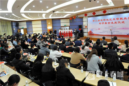 第二屆昆明地區(qū)無(wú)償獻(xiàn)血愛(ài)心助學(xué)基金發(fā)放儀式現(xiàn)場(chǎng)。