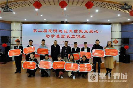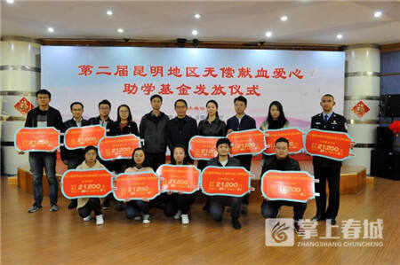 12月25日下午3點(diǎn),第二屆昆明地區(qū)無(wú)償獻(xiàn)血愛(ài)心助學(xué)基金發(fā)放儀式在云南昆明血液中心舉行,來(lái)自45所高校的902名在校大學(xué)生獲得87.95萬(wàn)元的助學(xué)基金獎(jiǎng)勵(lì)。