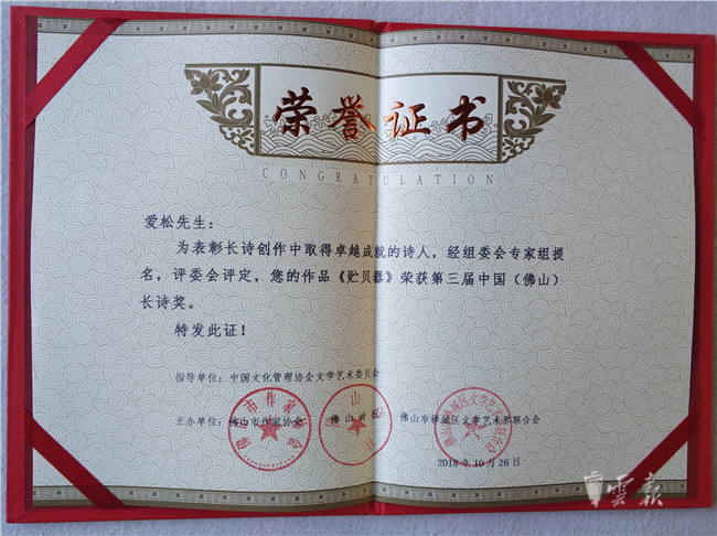 繼榮獲云南省優(yōu)秀作家獎之后,晉寧區(qū)青年詩人、作家段愛松在第三屆中國長詩公益品鑒暨中國(佛山)長詩獎頒獎典禮上,以古滇國為背景創(chuàng)作的5000余行長詩《貯貝器》斬獲本屆長詩獎。此外,段愛松中篇小說《西門旅社》榮登改革開放40年云南40部小說排行榜。