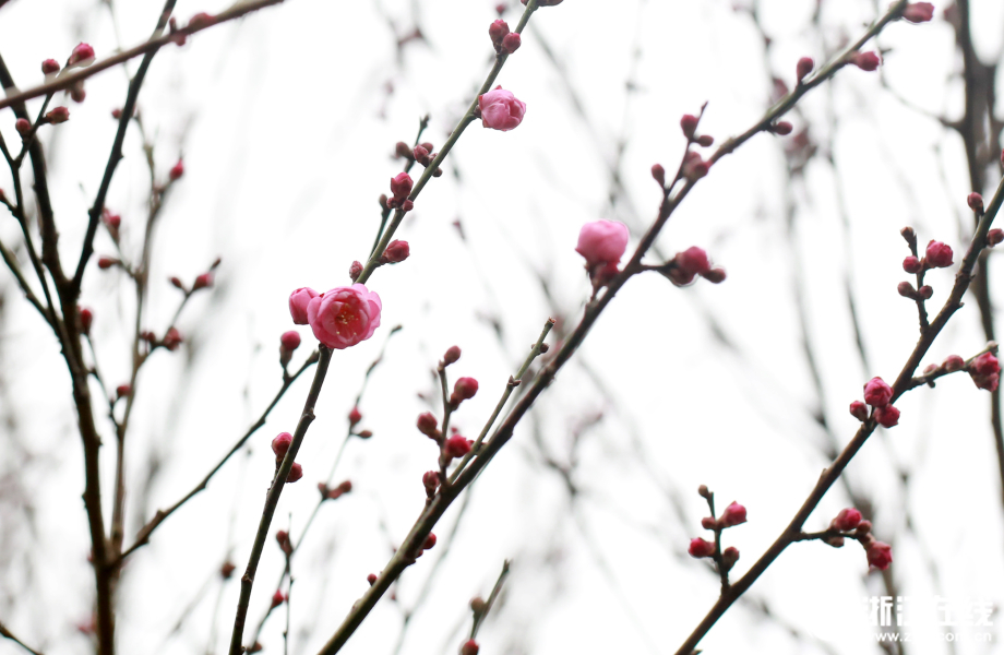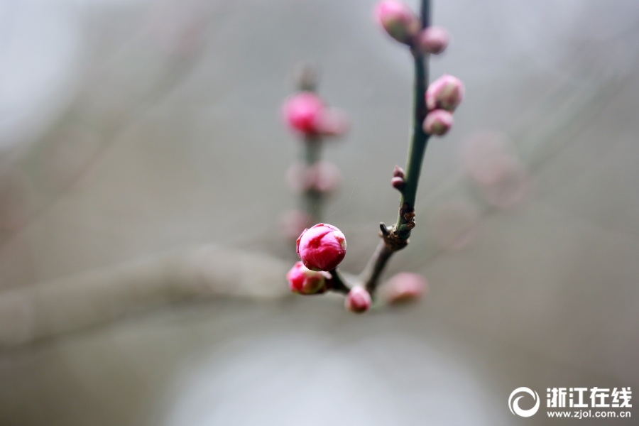 12月25日,杭州植物園靈峰探梅景區(qū),零星的梅花已經(jīng)悄然綻放枝頭,不少梅樹(shù)上結(jié)滿了小小的花苞,煞是好看,讓游客興奮不已。(浙江在線 記者魏志陽(yáng))