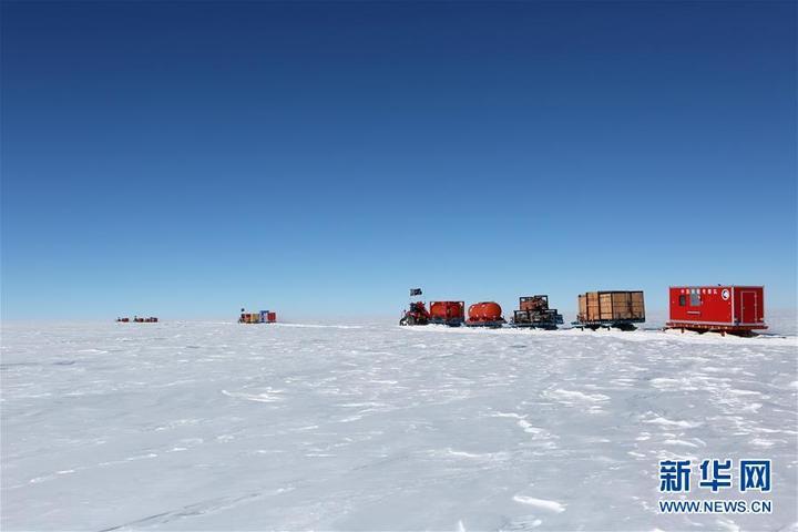 12月25日,中國(guó)南極科考隊(duì)內(nèi)陸隊(duì)行進(jìn)在前往泰山站的途中。新華社 記者劉詩(shī)平攝