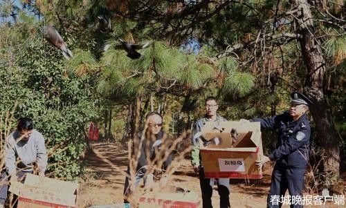 12月25日,昆明市森林公安局受云南省野生動物收容拯救中心邀請,參加在金殿對面王家山開展的放歸收容拯救野生動物活動。上午10時,云南省森林自然中心、云南省森林公安局、昆明森林公安局相關(guān)負(fù)責(zé)人和云南野生動物收容拯救中心工作人員一起,打開一個個箱籠,一只只鳥兒展翅飛向藍(lán)天,回歸家園。