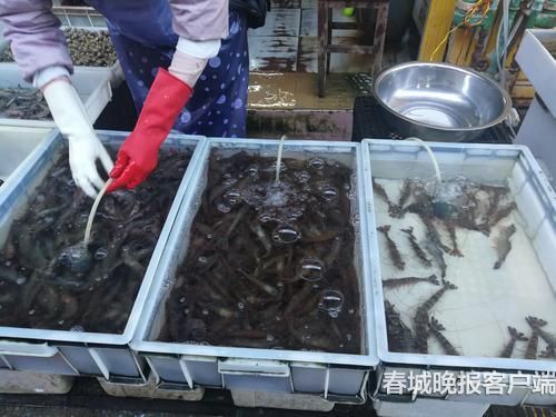 雖然節(jié)前大家喜歡買海鮮,不過(guò)篆新農(nóng)貿(mào)市場(chǎng)多家海鮮店賣的海鮮價(jià)格暫時(shí)沒(méi)出現(xiàn)上漲情況?;鶉r價(jià)格固定在70到90元/公斤,螃蟹一只在15到30元不等,魷魚65元/公斤,花甲15到20元/公斤,竹節(jié)蝦每公斤120元左右。