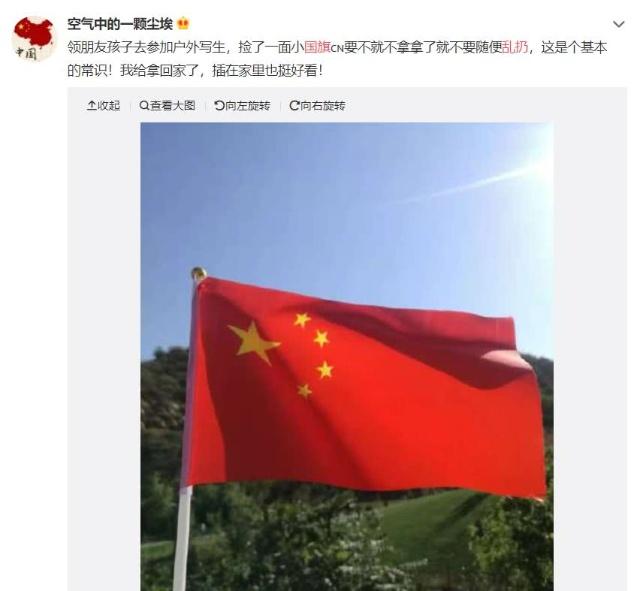 發(fā)現(xiàn)垃圾桶中有一面小國旗,