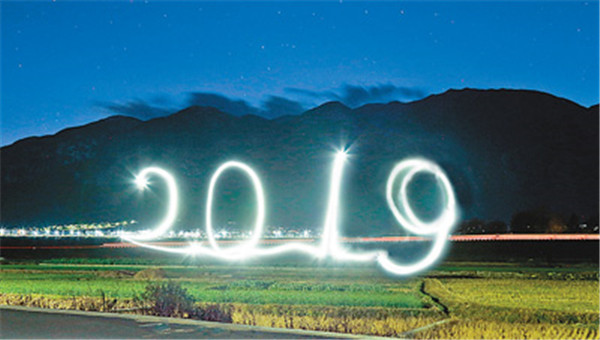 云南大理鄉(xiāng)間傍晚,2019字樣的光軌。資料圖片(人民視覺)
