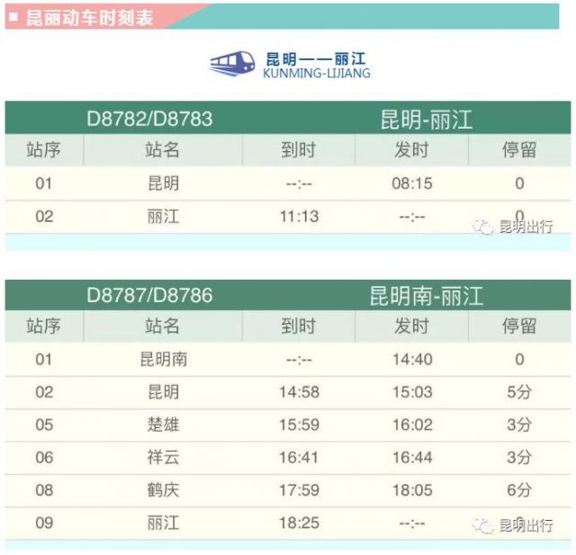 而昆明至蒙自動車組??空拘畔?昆明、昆明南、建水和蒙自。