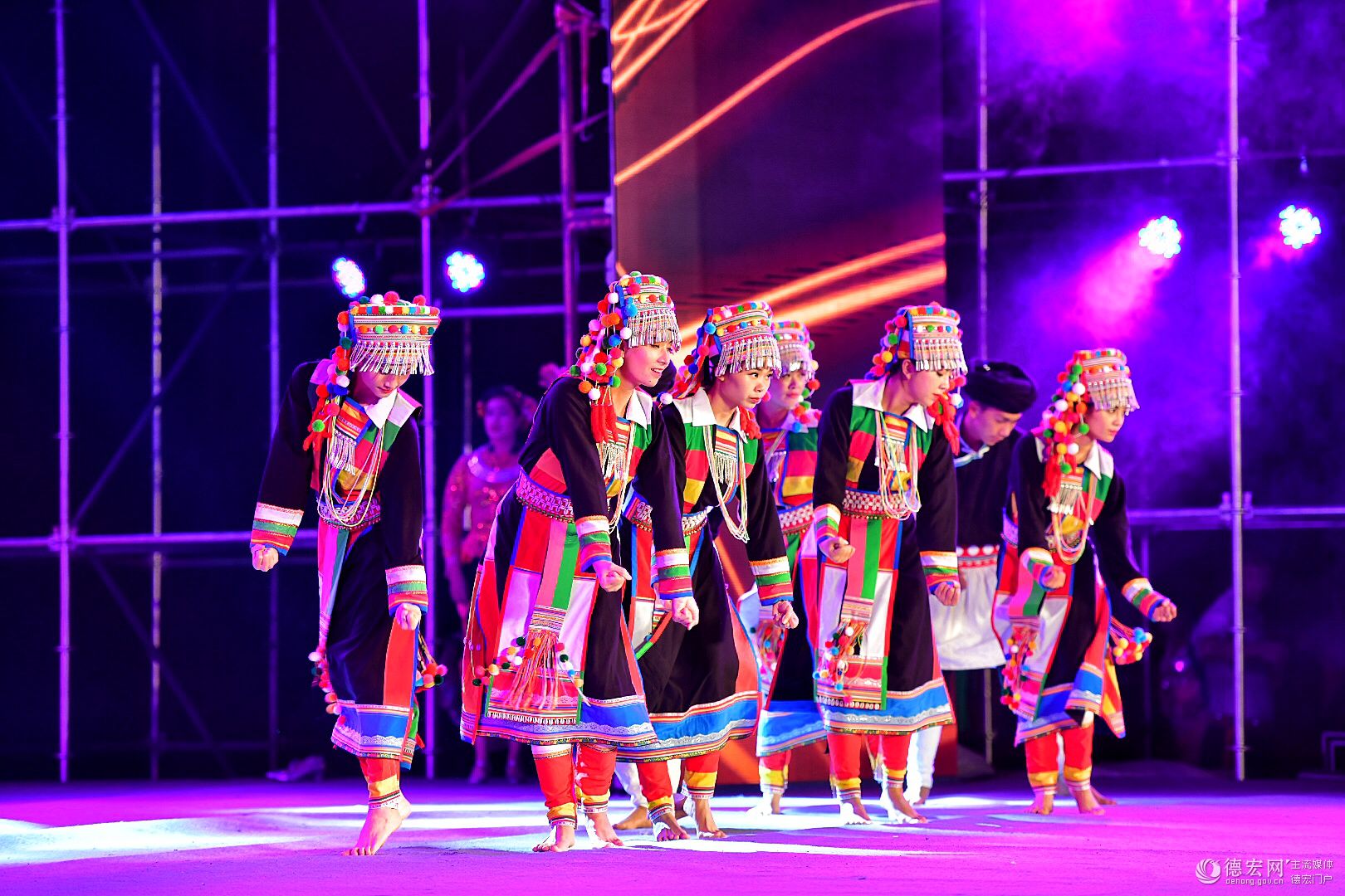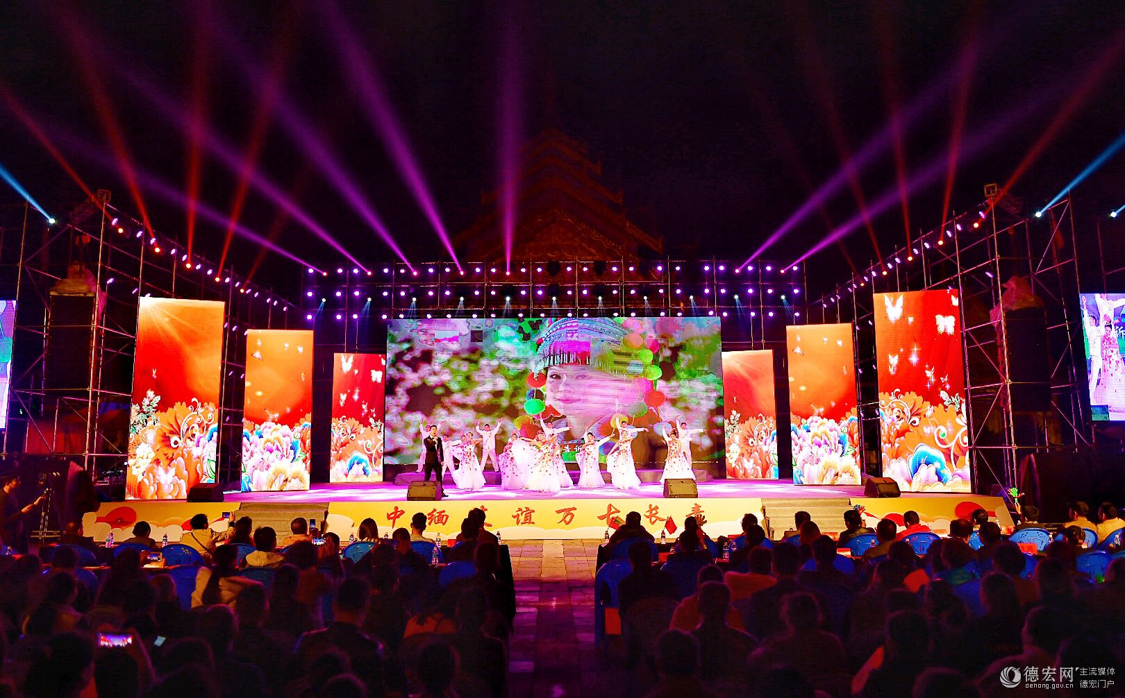 晚會中,緬甸藝術(shù)家和德宏優(yōu)秀的舞蹈演員、歌唱演員們同在一方舞臺為相聚在瑞麗的來自全國各地以及緬甸友人們呈現(xiàn)了一臺多元、多姿、多彩的表演。傣族舞蹈《有一個美麗的地方》、緬甸歌曲《母親》、景頗族舞蹈《娋如春山》、緬甸舞蹈《嘎金》、傣族男女對唱《情投意合》、德昂族舞蹈《德昂花》、葫蘆絲獨(dú)奏《花筒裙》等節(jié)目的輪番上演獲得了臺下觀眾的陣陣掌聲。