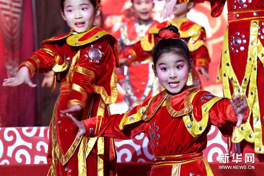 2018年12月31日,小朋友們在“出彩河南有好戲·2019新年網(wǎng)絡(luò)戲曲演唱會”上表演《花木蘭》。新華社 記者李安/攝