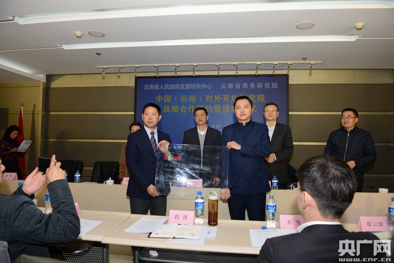 12月29日,由云南省人民政府發(fā)展研究中心分別與云南省商務(wù)研究院、新華社中國(guó)經(jīng)濟(jì)信息社共同建設(shè)的“中國(guó)(云南)對(duì)外開(kāi)放研究院”“云南省經(jīng)濟(jì)信息應(yīng)用研究中心” 戰(zhàn)略合作簽約暨授牌儀式在省商務(wù)廳舉行。
