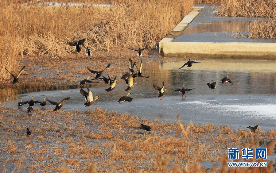 青島市城陽區(qū)白沙河候鳥棲息地里越冬的鳥類(1月1日攝)。