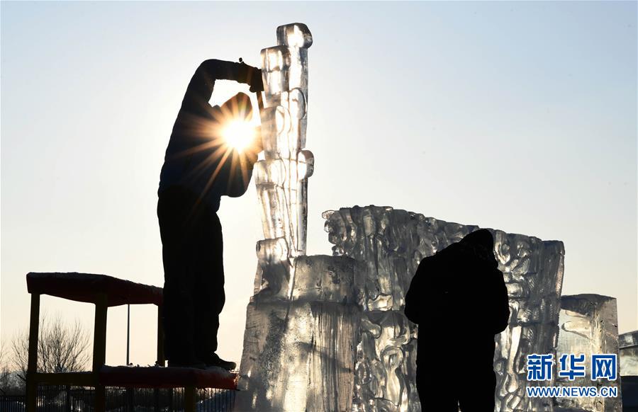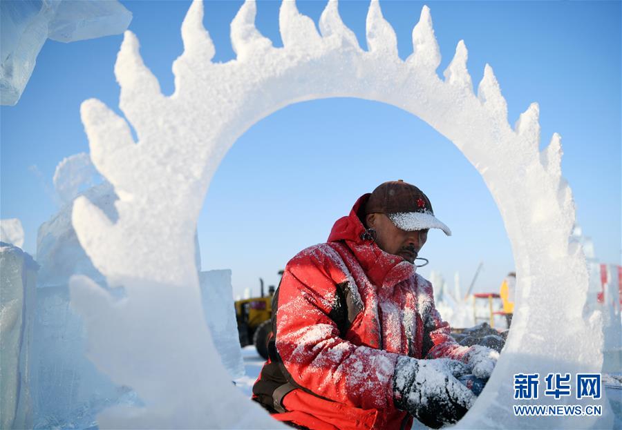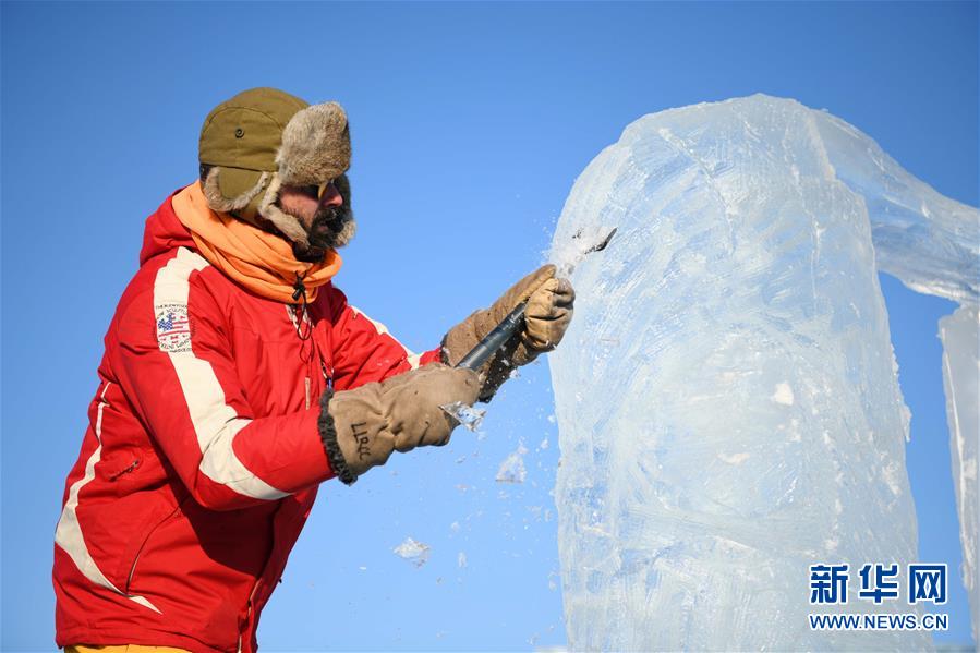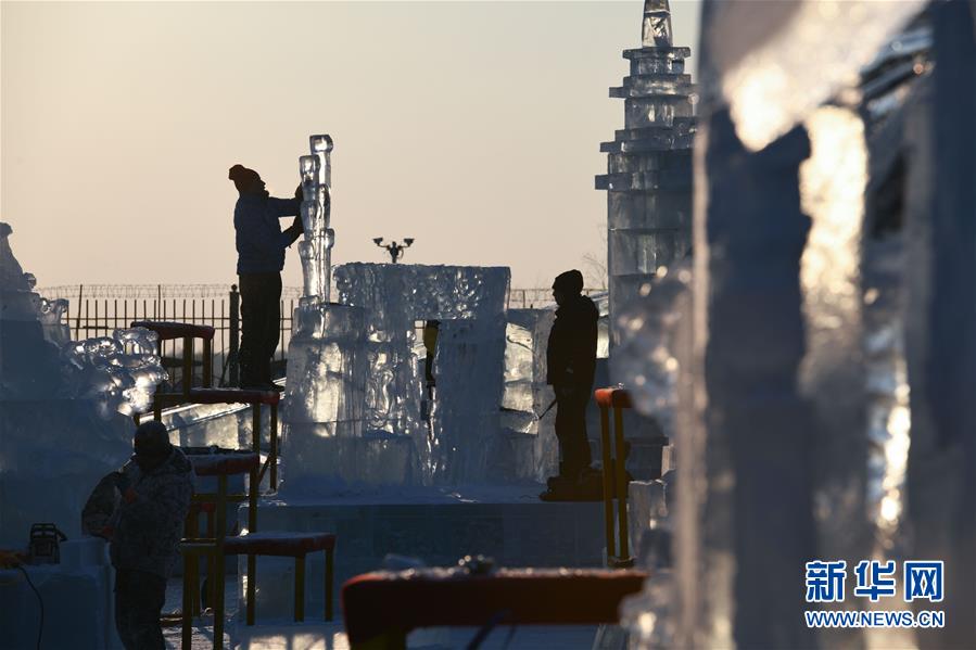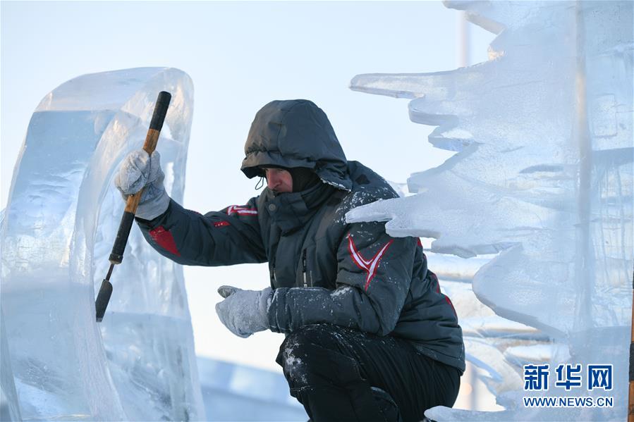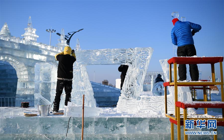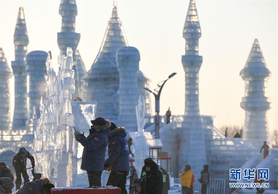 1月2日,選手在哈爾濱冰雪大世界內(nèi)制作冰雕。 新華社記者王松/攝