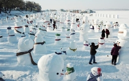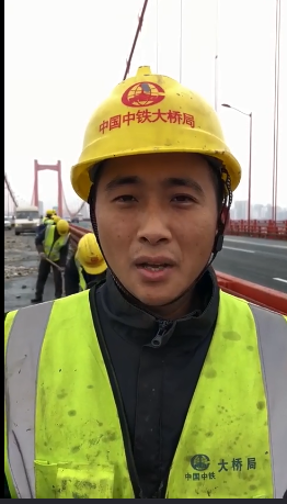 新年第一天,楊泗港大橋的建設者們清理積雪,迎接新年的到來。(黎虹 攝)
