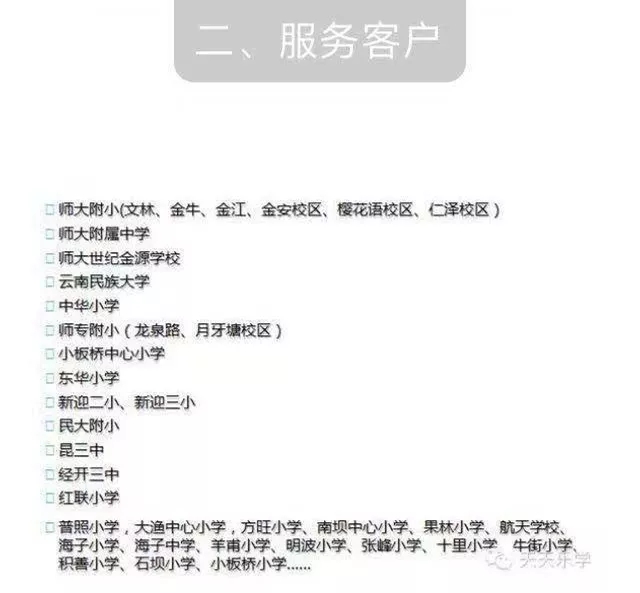 家長們在這家天天向上營養(yǎng)快餐公司授權(quán)的微信公眾號及網(wǎng)站上查到,這家公司主營學(xué)生營養(yǎng)餐生產(chǎn)、配送,目前每天配送昆明30多所中小學(xué)2萬多份餐。是昆明市教育局2011年重點招商引資項目,同年被市教育局指定為學(xué)生營養(yǎng)餐定點生產(chǎn)企業(yè)。
