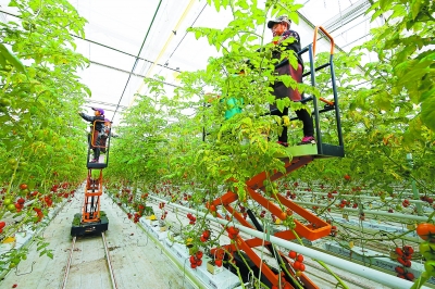 昌平小湯山的番茄工廠采用無土栽培技術(shù)。文明拍客 張全躍/攝