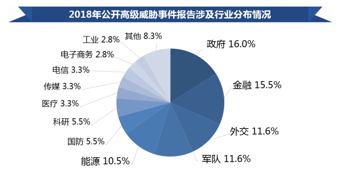 報告顯示,政府、外交、軍隊、國防依然是 APT 攻擊者的主要目標(biāo),能源、電力、醫(yī)療、工業(yè)等國家基礎(chǔ)設(shè)施性行業(yè)也正面臨著APT攻擊的風(fēng)險。而金融行業(yè)主要面臨一些成熟的網(wǎng)絡(luò)犯罪團伙的攻擊威脅,如MageCart、Cobalt Group等等,其組織化的成員結(jié)構(gòu)和成熟的攻擊工具實現(xiàn)對目標(biāo)行業(yè)的規(guī)?;?這與過去的普通黑客攻擊是完全不同的。除了針對金融、銀行外,電子商務(wù)、在線零售等也是其攻擊目標(biāo)。