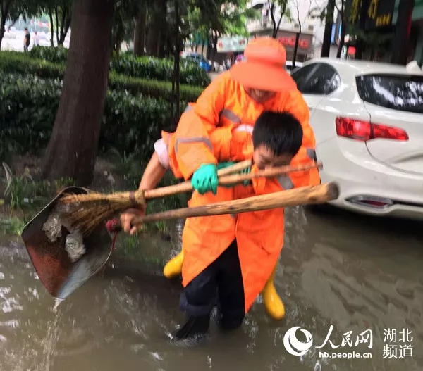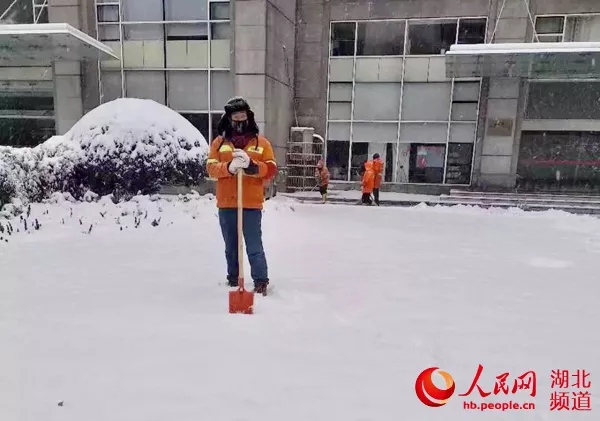 當(dāng)天中午12時,羅先平轉(zhuǎn)戰(zhàn)到漢口新華下路一段800多米的路段除雪融冰。他們的任務(wù)是,將這里的積雪全部清運走。