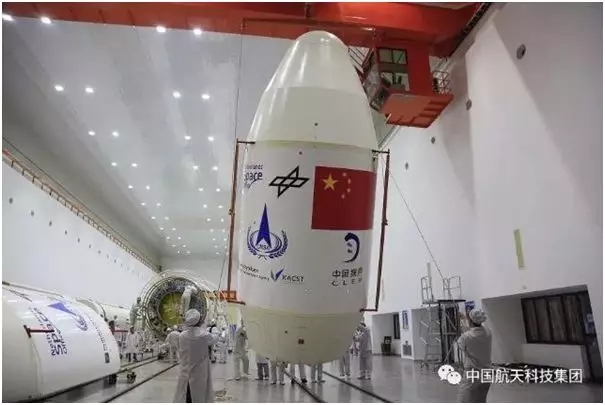 嫦娥四號任務的火箭整流罩上有眾多國際機構,可以看出這是個高度國際化的任務(圖源:中國航天科技集團)