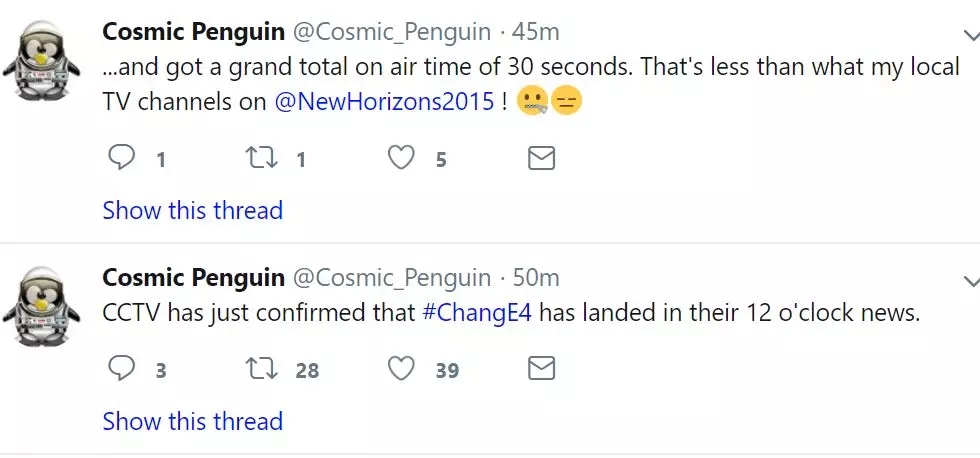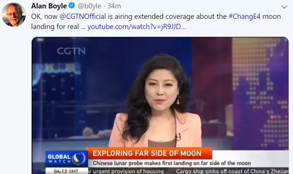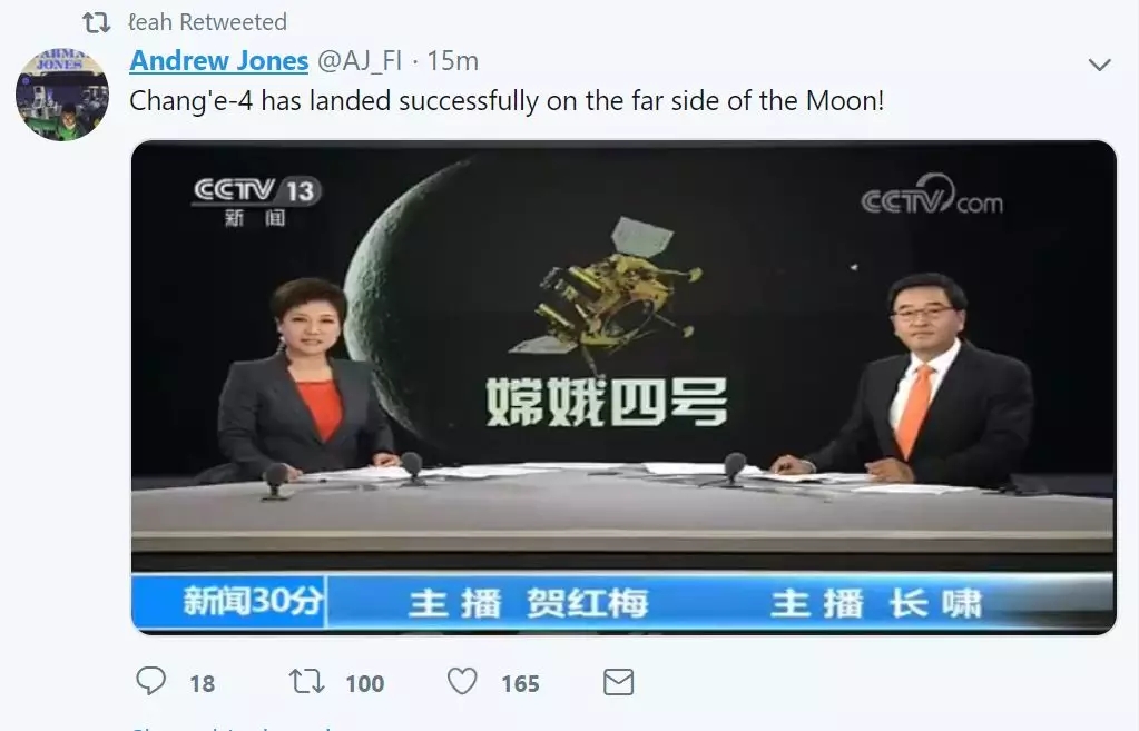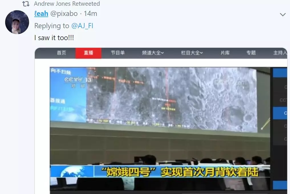 當然,正所謂瑕不掩瑜。這些小插曲并沒有打消這些外國網(wǎng)友對嫦娥4號及其成就的巨大熱情。在官方終于宣布了成功登陸的消息后,這些老外們都在發(fā)布對于嫦娥4號的贊美之詞,稱這確實是“前無古人”的成就。