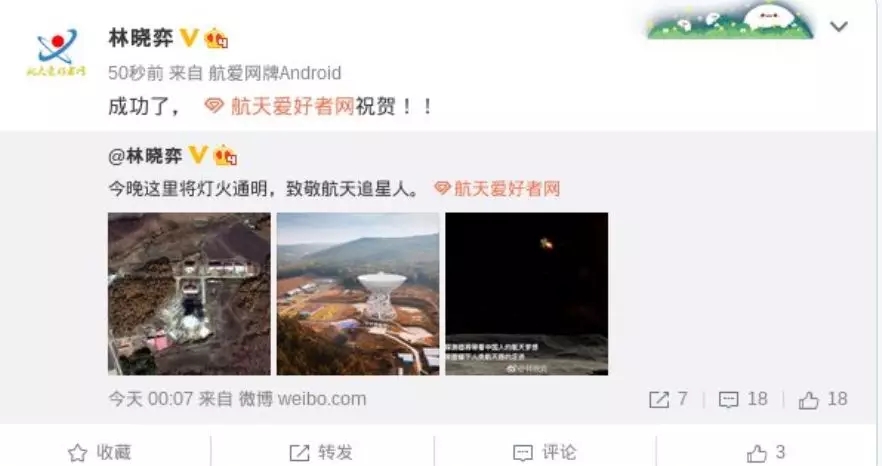 發(fā)射成功現(xiàn)場(圖源:我們的太空微博)