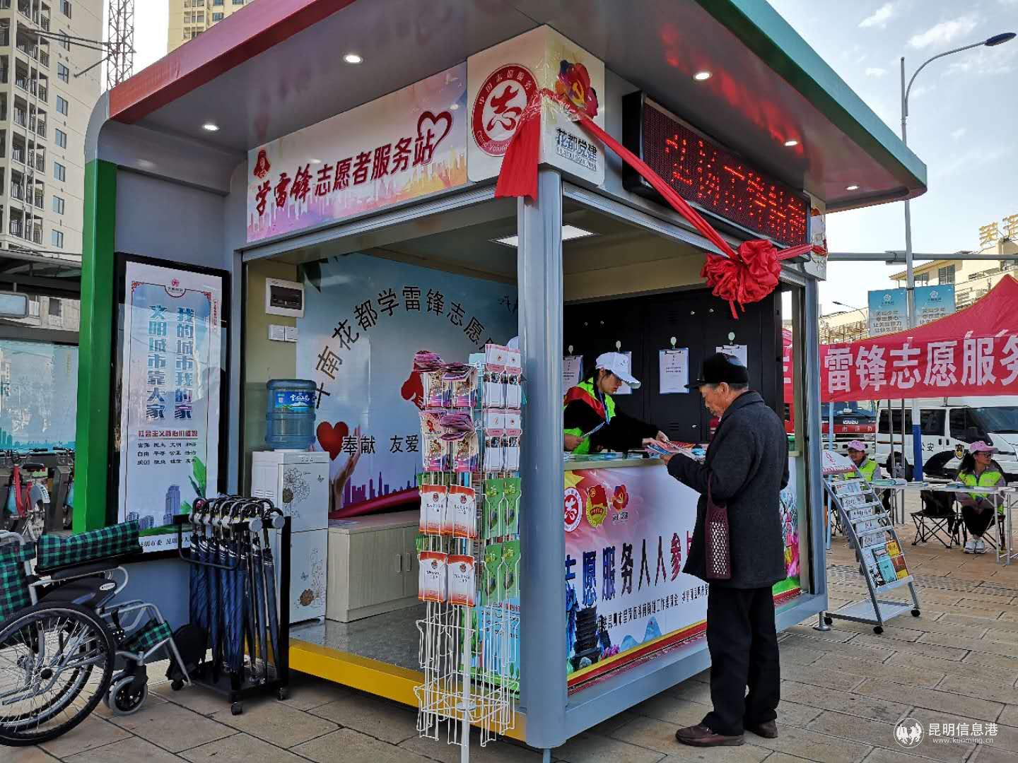 建立學(xué)雷鋒志愿服務(wù)站是呈貢區(qū)文明城市創(chuàng)建的一項(xiàng)重要內(nèi)容。呈貢區(qū)斗南花都學(xué)雷鋒志愿服務(wù)站位于斗南花卉小鎮(zhèn)的核心區(qū),服務(wù)時(shí)間為每天早上9點(diǎn)至下午6點(diǎn)。同時(shí),服務(wù)站還是昆明斗南特色小鎮(zhèn)城市基層黨建示范點(diǎn)的重要組成部分,并設(shè)置了“花都黨建”的標(biāo)識(shí),旨在展示呈貢區(qū)斗南花卉小鎮(zhèn)熱情好客、服務(wù)市民的文明形象。